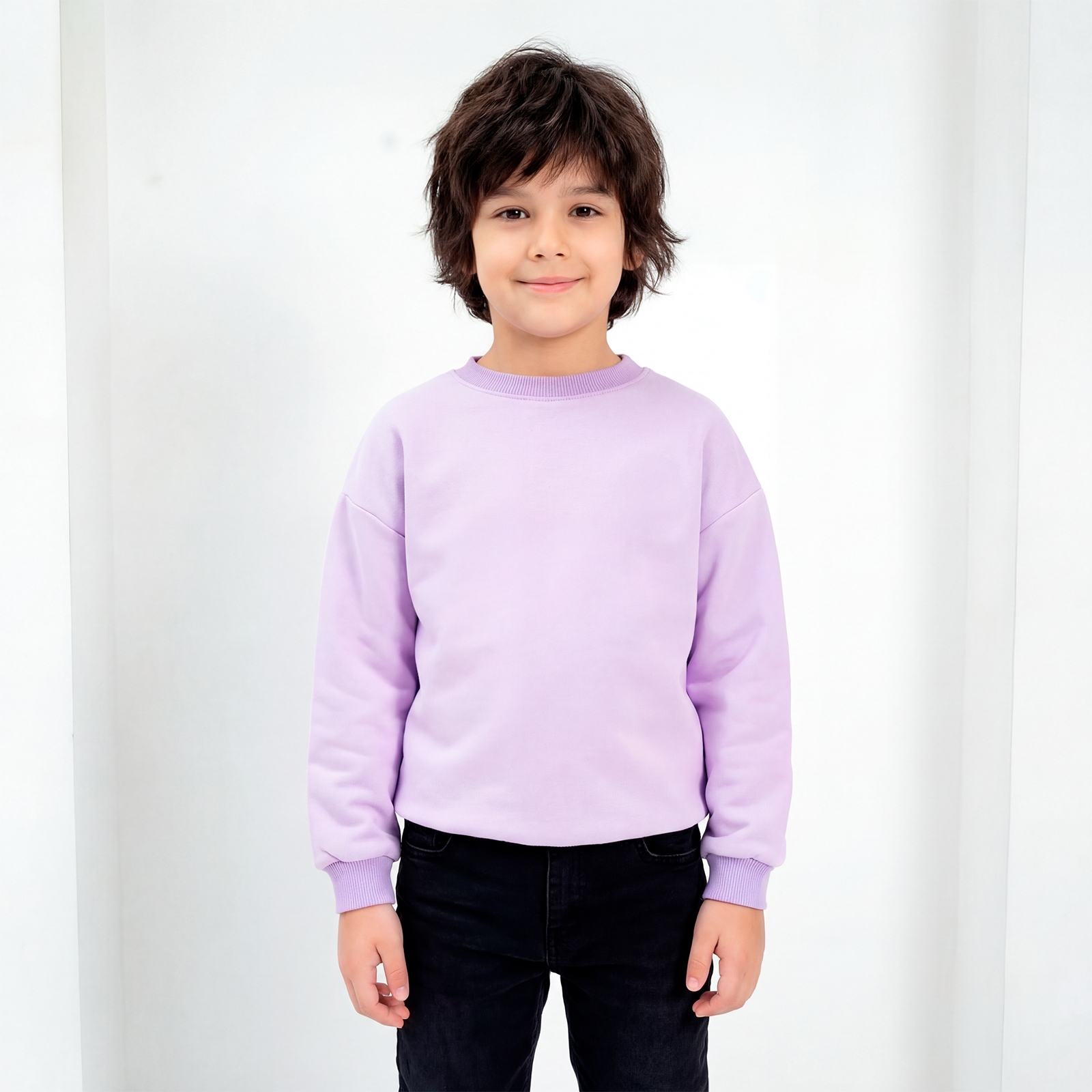 ост модели на фото 128 см. Базовый свитшот для мальчика и девочки подарит уютный и стильный образ, дополнить который можно джинсами, брюками, легинсами. Можно носить самостоятельно в тёплую погоду и на лонгслив, футболку — в прохладную. Материал модели - высококачественный футер-трехнитка.Компактный крой не сковывает движения и легко надевается под куртку – удобно для школы, похода на секции или семейной прогулки на свежем воздухе.